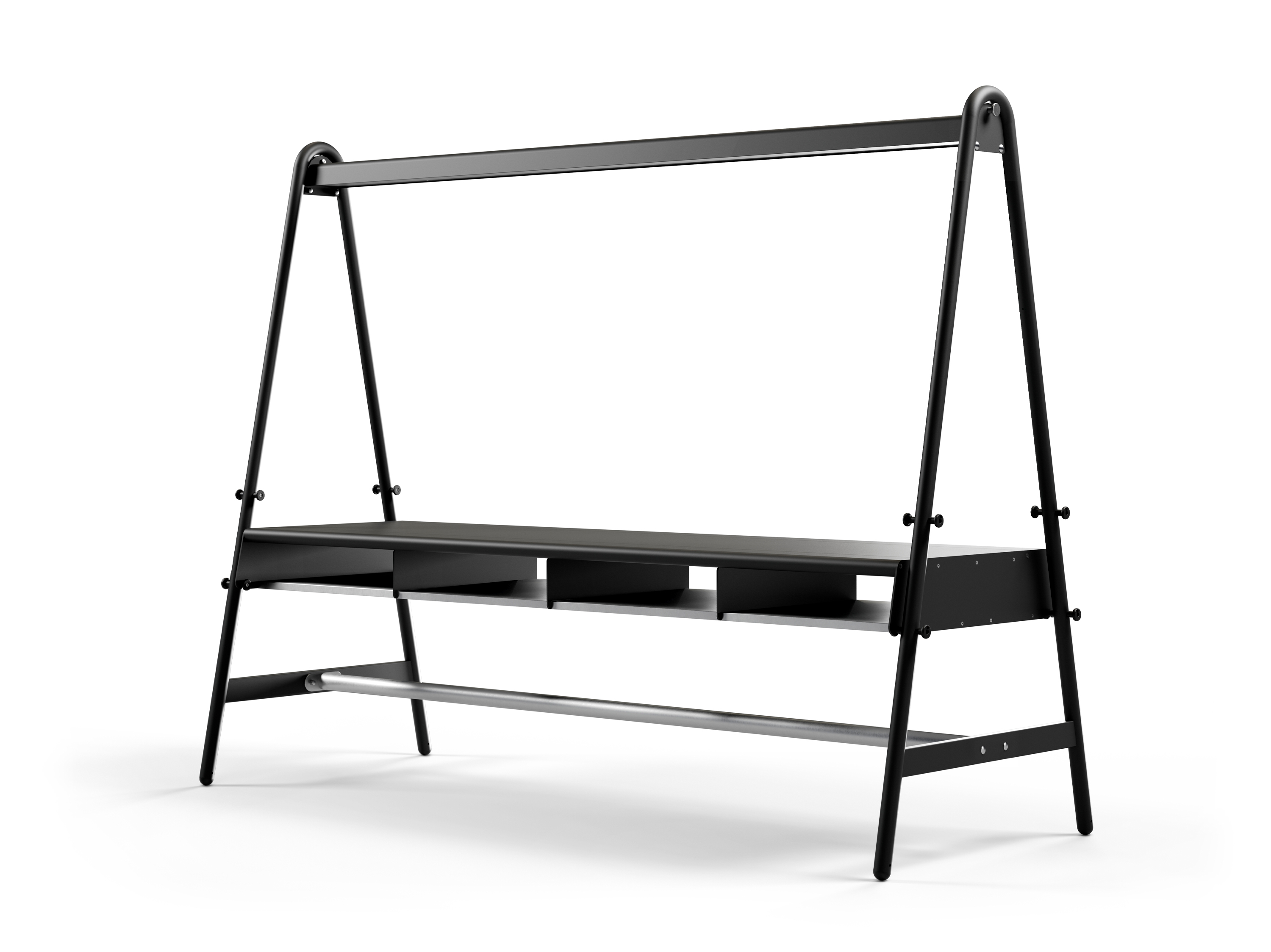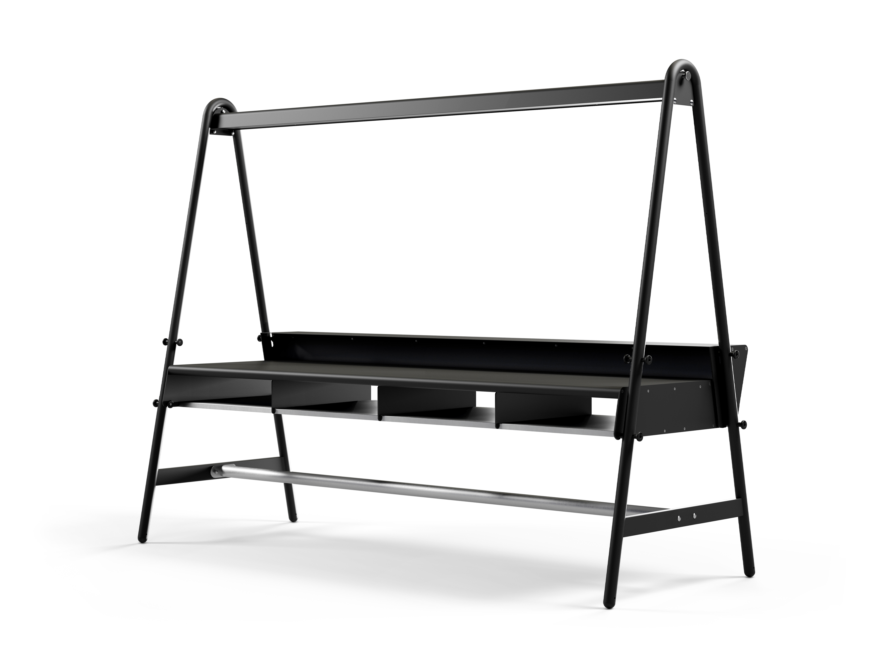 Wir sprechen vom „George Clooney“ der Beschichtungstechniken: Die Oberfläche sieht im Laufe der Jahre immer besser aus... Unsere Tools for Togetherness mit verzinkten Oberflächen verstecken Schmutz dank der rauen Textur des Materials meisterlich. Zuerst sehen die verzinkten Teile sehr glänzend aus, aber unter dem Einfluss von Sonne und Regen werden sie langsam matt. Regen kann auch dunkle Flecke unter den Stößen verursachen.