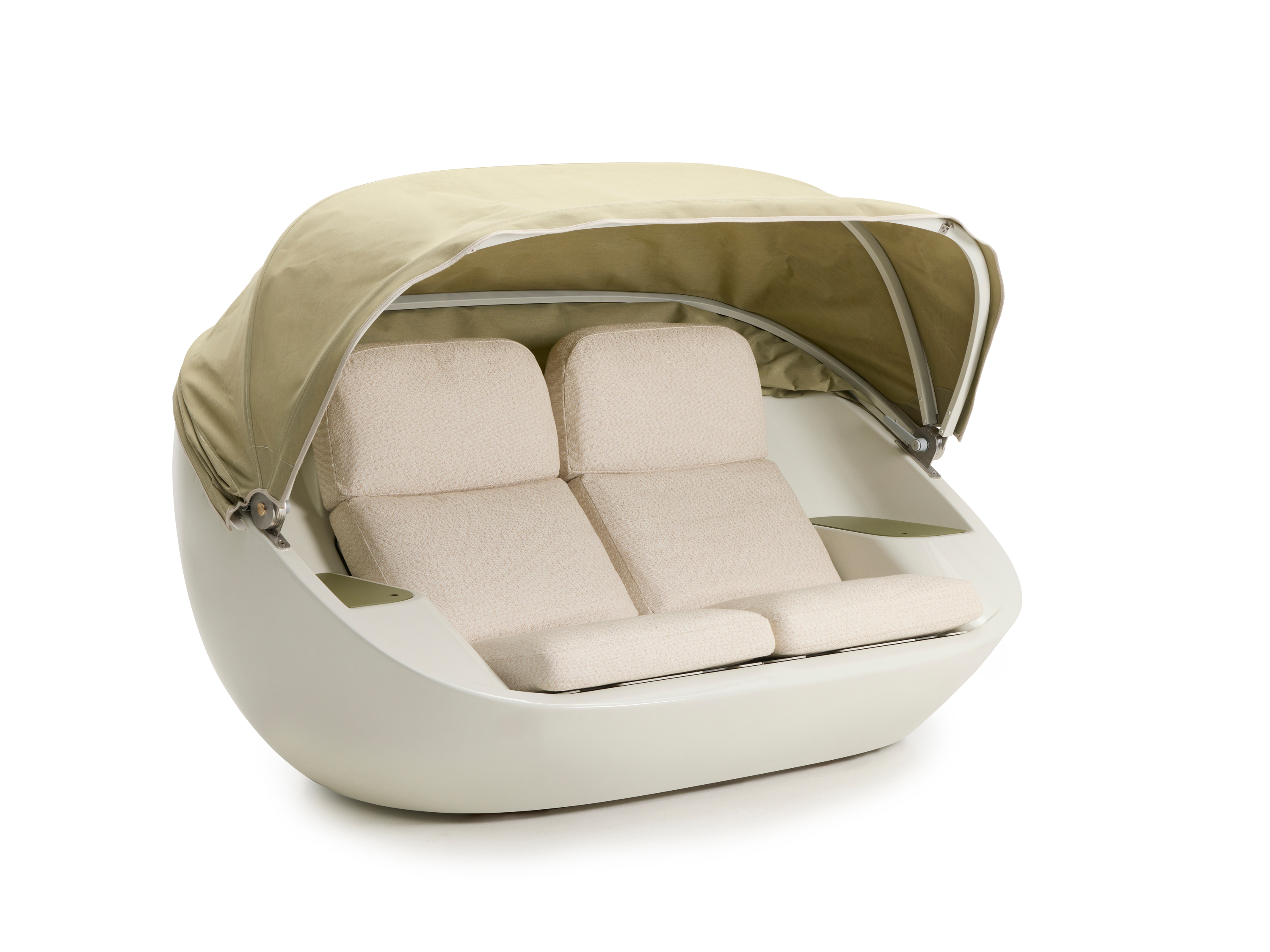 De cabriokap beschermt je sofakussens tegen de regen wanneer je het meubel niet gebruikt. Maar tegelijk positioneer je de cabriokap op die manier, dat ze je beschermt tegen de zon.
